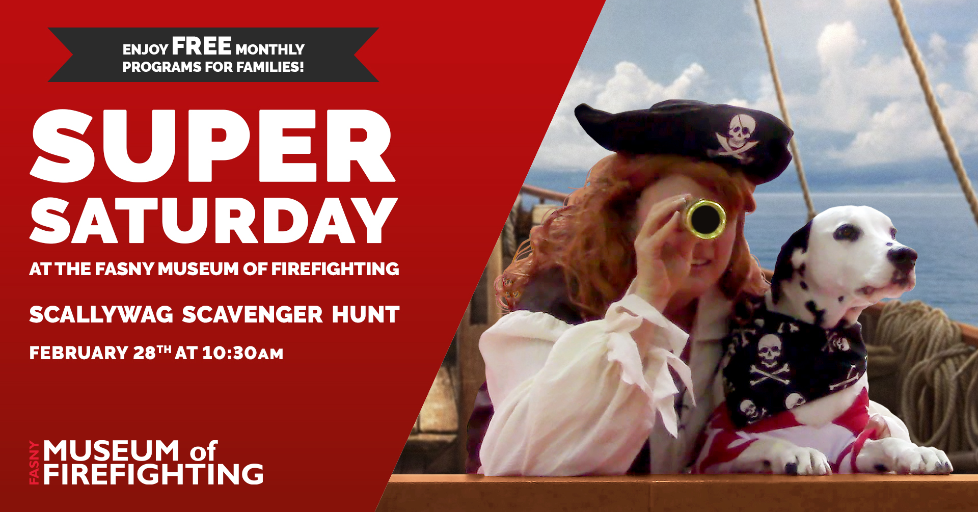 SOS! The Museum has been invaded by pirates! Venture through the Museum to complete a pirate scavenger hunt and meet colorful pirate characters who will teach you fire safety! As your adventure progresses through the Museum, you will have the opportunity to win pirate booty from Captain Penny and her marauders: Calico Jane, Lt. Lorenzo Longshanks and their notorious pirate dog, First Mate Molly! Will you dare to complete this scavenger hunt challenge? If so, we hope you’ll join us for this morning of mischievous pirate fun!